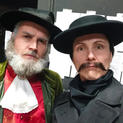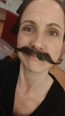 Der Herbst war ohnehin voll, voller, vollstens: Die erste Produktion mit Theater Rakete unter der Regie von Marcus Thill: "DER MENSCHENFEIND" (und ich war zum ersten Mal in meinem Leben blond), meine Ausbildung und erster Lehreinsatz als Schauspielpatientin, Lesung beim Krimifest, eine Kafka Lesung (nbv, Martin Dueller) und eine Lesung zum Thema Rechtsruck - Gefahr für Frauenrechte - Diskussionsabend und szenische Lesung unter der Leitung von Ute Liepold, der Projektstart "BE COOL, STAY COOL" im November und natürlich nebenbei noch viel Arbeit im Blumengeschäft. Gleich nach der Dernière von "DER MENSCHENFEIND" ging es ans Theater an der Rott für die Wiederaufnahme von "IN 80 TAGEN UM DIE WELT" und für eine weitere Produktion "DAS KALTE HERZ" (und habe das erste Mal einen Echthaarschnurrbart bekommen).