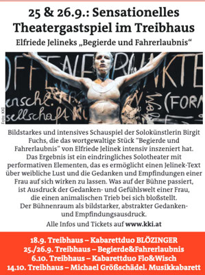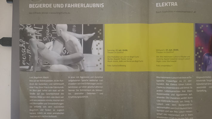 Ein paar Tage darauf ging es los mit den Proben für "JEDERMANN" Theater Wolkenflug, Regie Ute Liepold. Während dieser Zeit hatte ich wieder einmal einen Einsatz als Trainerin im Seminar "Tuniversum" der Styriak. Auch startete die Erarbeitung des Schulprojekts "BE COOL - STAY COOL" zum Thema Kinderrechte. In vier Modulen pro Jahr (Dauer 2 Jahre) werden verschiedene Schwerpunktthemen spielerisch mit den Kindern in der Volksschule Hönigtal erarbeitet. Mit meiner eigenen Produktion "BEGIERDE und FAHRERLAUBNIS" von Elfriede Jelinek war ich auch wieder auf ein paar Bühnen zu Gast. Eine weitere neue Aufgabe nahm ich an: Die ersten Unterrichtseinheiten in Phonetik an der Universität Klagenfurt für das Sprachzentrum Deutsch in Österreich haben mich überzeugt, dass ich das wohl noch einige Zeit weiter machen werde.