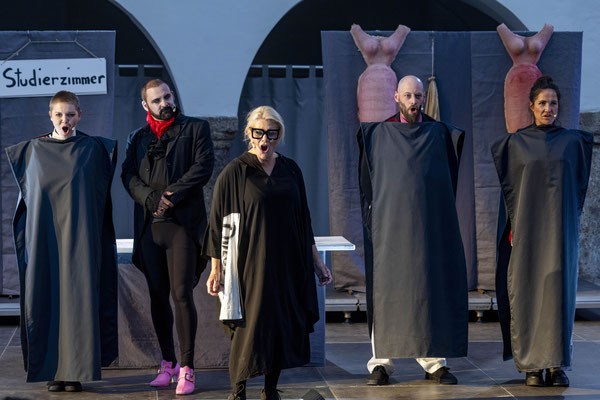 Angenommen, FAUST ist eine Frau. Eine erfolgreiche und kluge Frau, die beruflich alles erreicht hat und sich nun die Sinnfrage stellt. Wie soll ich leben? Wie soll ich lieben? Die historische Tragödie wird so zur Matrix für eine Überprüfung und performative Dekonstruktion weiblicher Lebensentwürfe in patriarchalen Lebensrealitäten. Was bedeutet es, wenn eine Frau am Leben verzweifelt und einen Pakt mit dem Teufel eingeht? Was bedeutet es, wenn Gretchen ein Mann ist und Faust mit seinen Besitzansprüchen bedrängt? Mit diesen aktuellen Fragen soll das Publikum konfrontiert werden und einen zeitgemäßen Blick auf den traditionellen Stoff werfen.